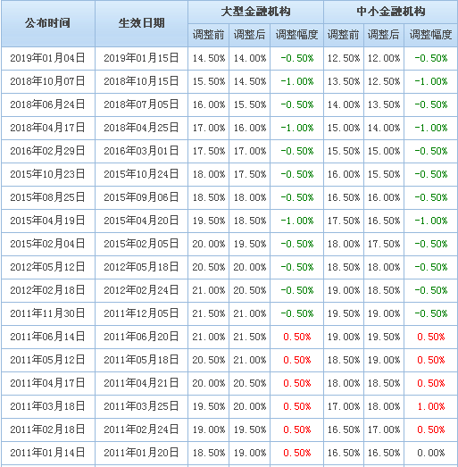 另附准备金率历次调整(2011-2019)一览: