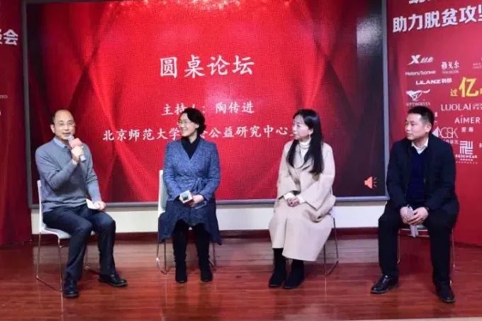 由北京师范大学社会公益研究中心教授陶传进主持,邀请行业代表纺织之光科技教育基金会副理事长张翠竹、企业代表美特斯邦威服饰有限公司公关总监蒋文慧、受益人代表贵州省雷山县永乐镇人民政府镇长李正才参与圆桌论坛讨论,共同总结协会、公益组织、企业、受益地区搭建共创共享的公益项目平台。