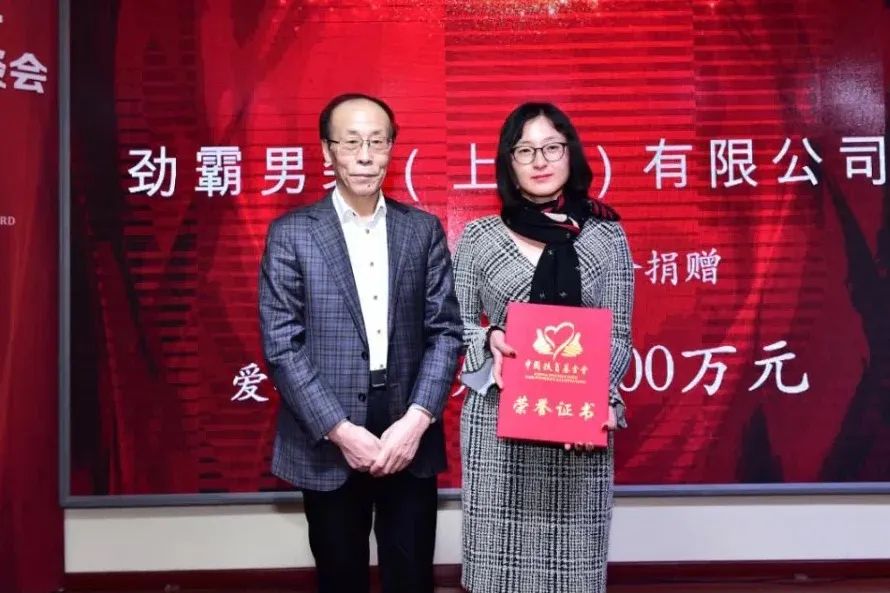 劲霸男装(上海)有限公司向中国扶贫基金会捐赠爱心物资公允价值100万元